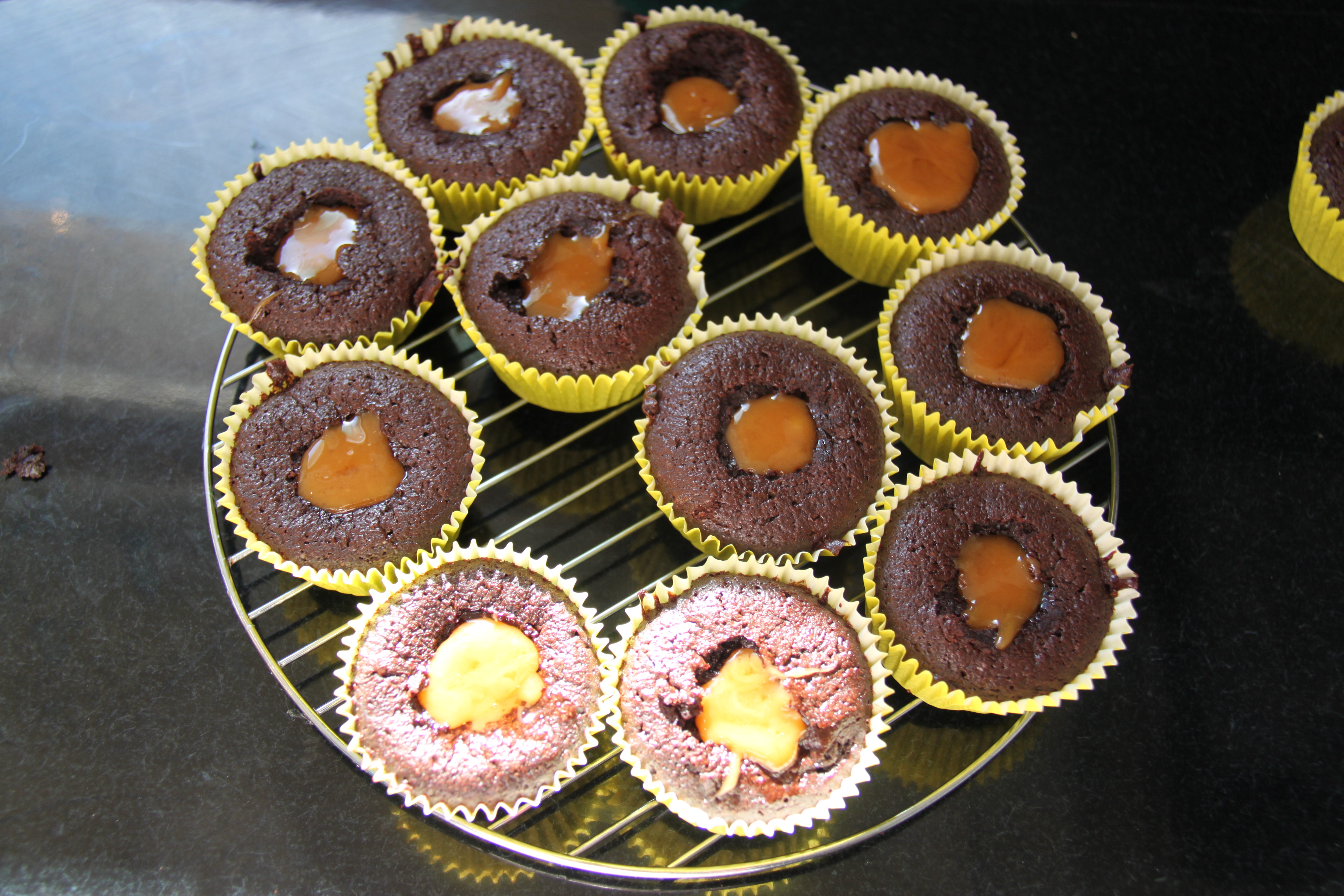 Fill the holes with the cooled caramel.