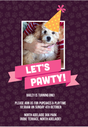 Bailey turned one on Thursday and we hosted a ‘pawty’ for her at a local dog park (check our her invitations below!!).