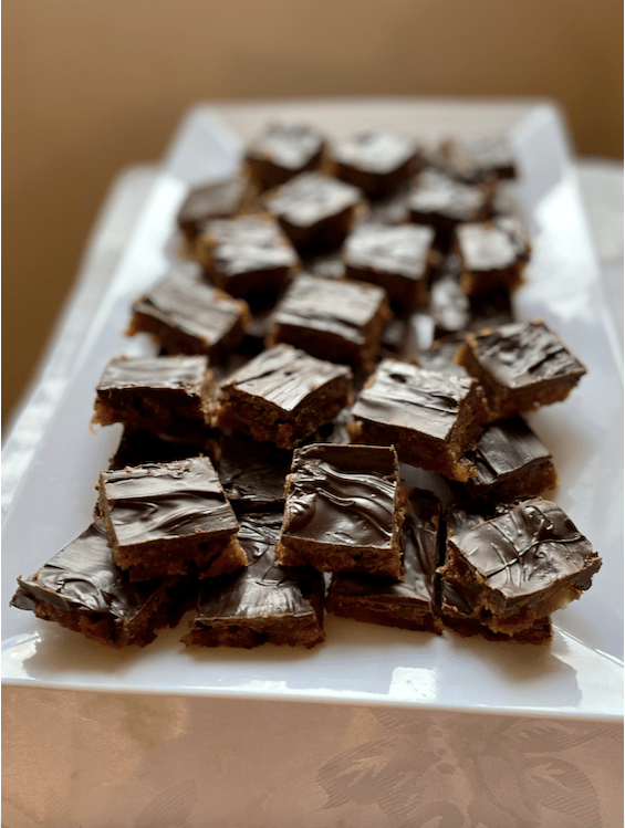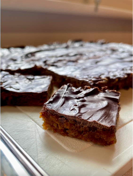 This slice always reminds me of my wonderful grandparents. Whenever I stayed with Grandma and Grandpa as a kid, in between playing shop in their walk-in pantry, dress-ups, cuddles and “helping” in the garden or kitchen, this slice made an appearance and never lasted long! I’m very lucky to still catch up with them regularly and can confirm that a piece (or two) of this slice is as delicious as I remember.