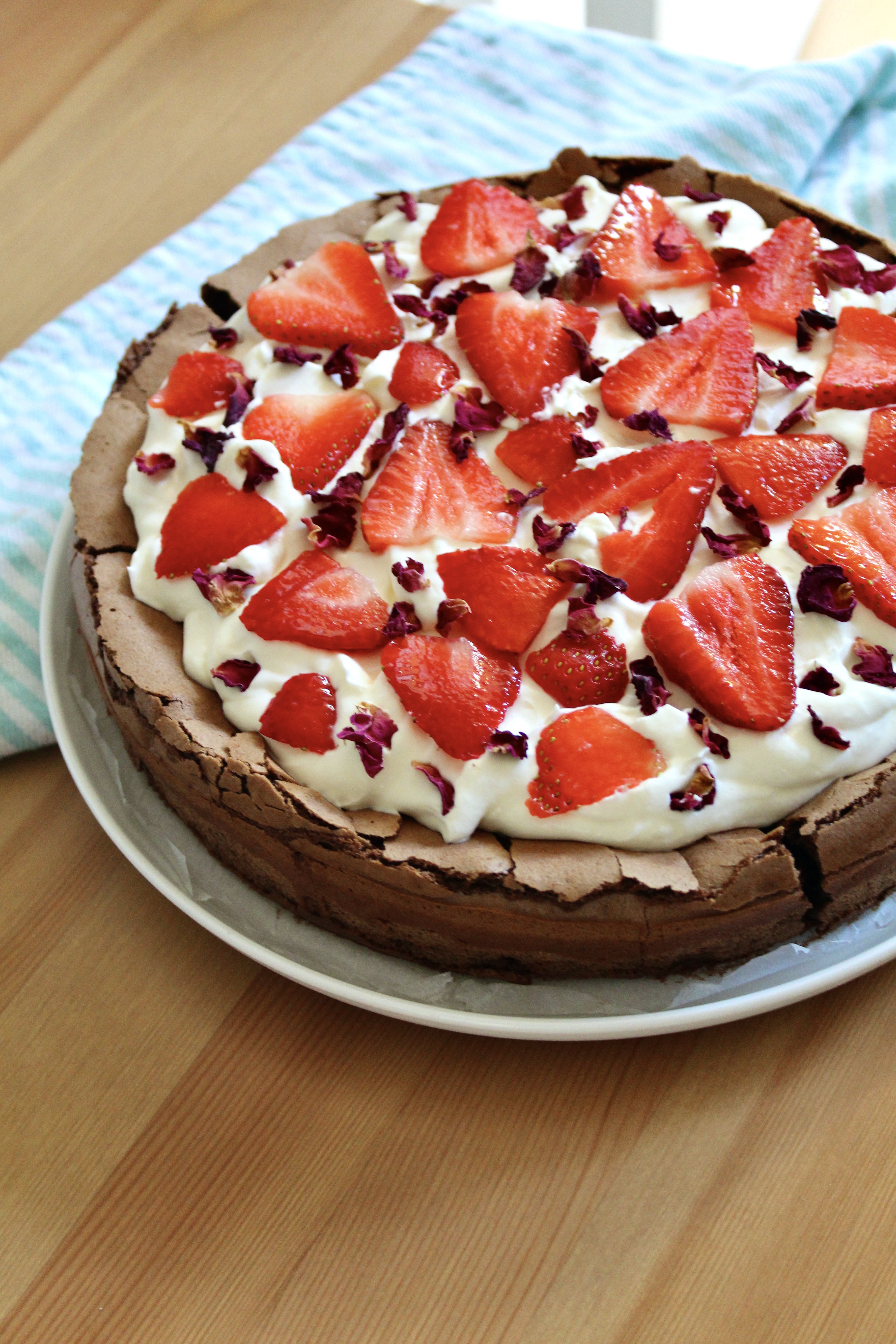 There’s something very freeing about a cake that’s supposed to crack, and that’s exactly what this one does – right before your eyes. But it’s the incredibly light, cloud-like texture of this cake that makes it so special (and gives it its name) due to its airy, flourless batter and whipped cream topping.