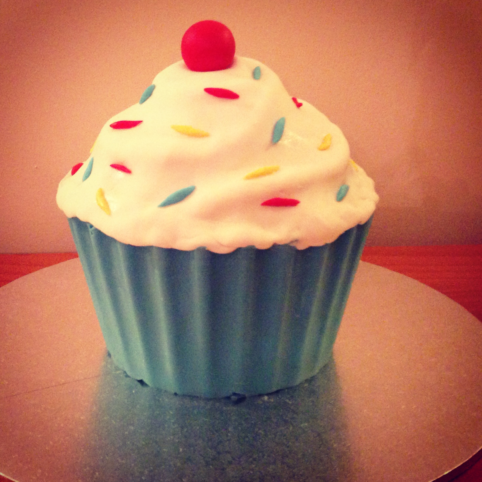 I love giant cupcakes. They’re so much fun to make, decorate and, more importantly, to eat. This recipe is for quite an intricate giant cupcake but it is easily adaptable – if you don’t want the bother of working with fondant you can just double the buttercream and ice the cake with that. The cupcake case is also optional (but I think makes the end product look so much more professional). Of course, you could also make the cake batter from scratch but do keep in mind that it is quite a time-consuming process already and the box mixes are relatively stable and so good for cutting and shaping.