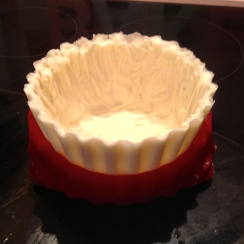 While the cakes are cooling, wash and dry the bottom cupcake pan ready to make the cupcake case. Melt half the chocolate/candy melts and pour into the bottom cupcake pan. Spread evenly up the sides using a pastry brush. Refrigerate for 20 minutes and then repeat with the remaining melts. Refrigerate for 30 minutes and then gently peel off the silicone mould.